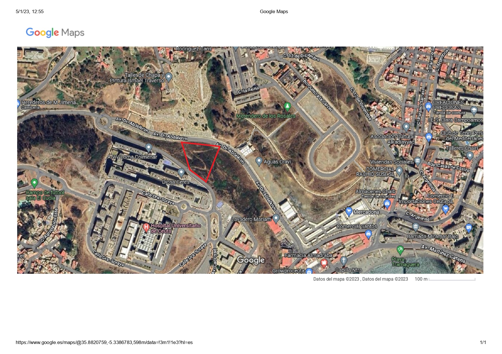 Se vende terreno de 1.820 m2 en Avda. del Dr. Abdelkrim, parcela nº 20.